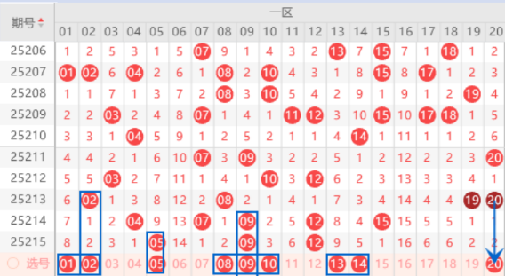 下图为01-20号数字区间走势分析图: