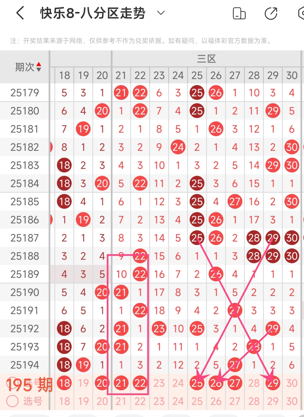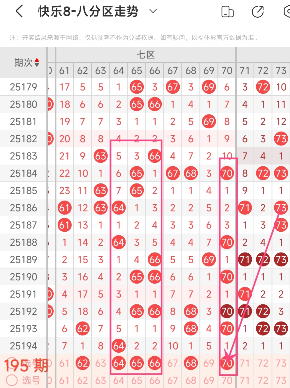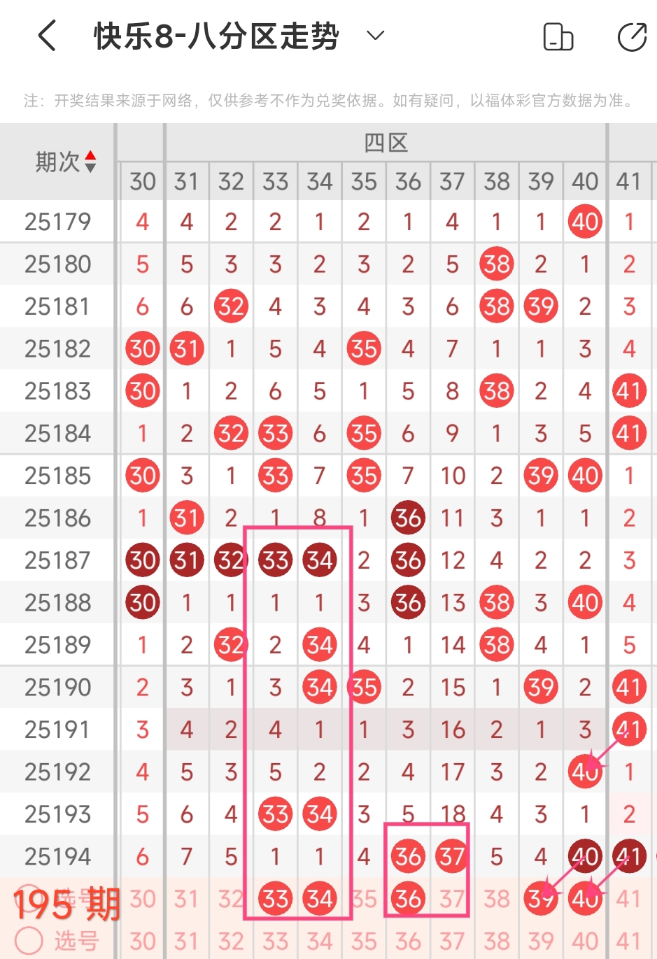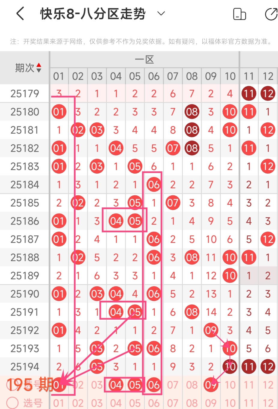 在快乐8的探索之旅中,通过对开奖走势图细致入微的观察,我们总结出一些具有参考价值的规律。几乎每一期开奖号码都呈现出以下显著特征:其一,大概率出现连号;其二,常常伴有边码;其三,遗漏值为1 2 3的号码频繁现身;其四,重号现象也较为常见。掌握这些要点,能为我们的投注提供方向指引。我们约定采用八分区走势图来展开分析。