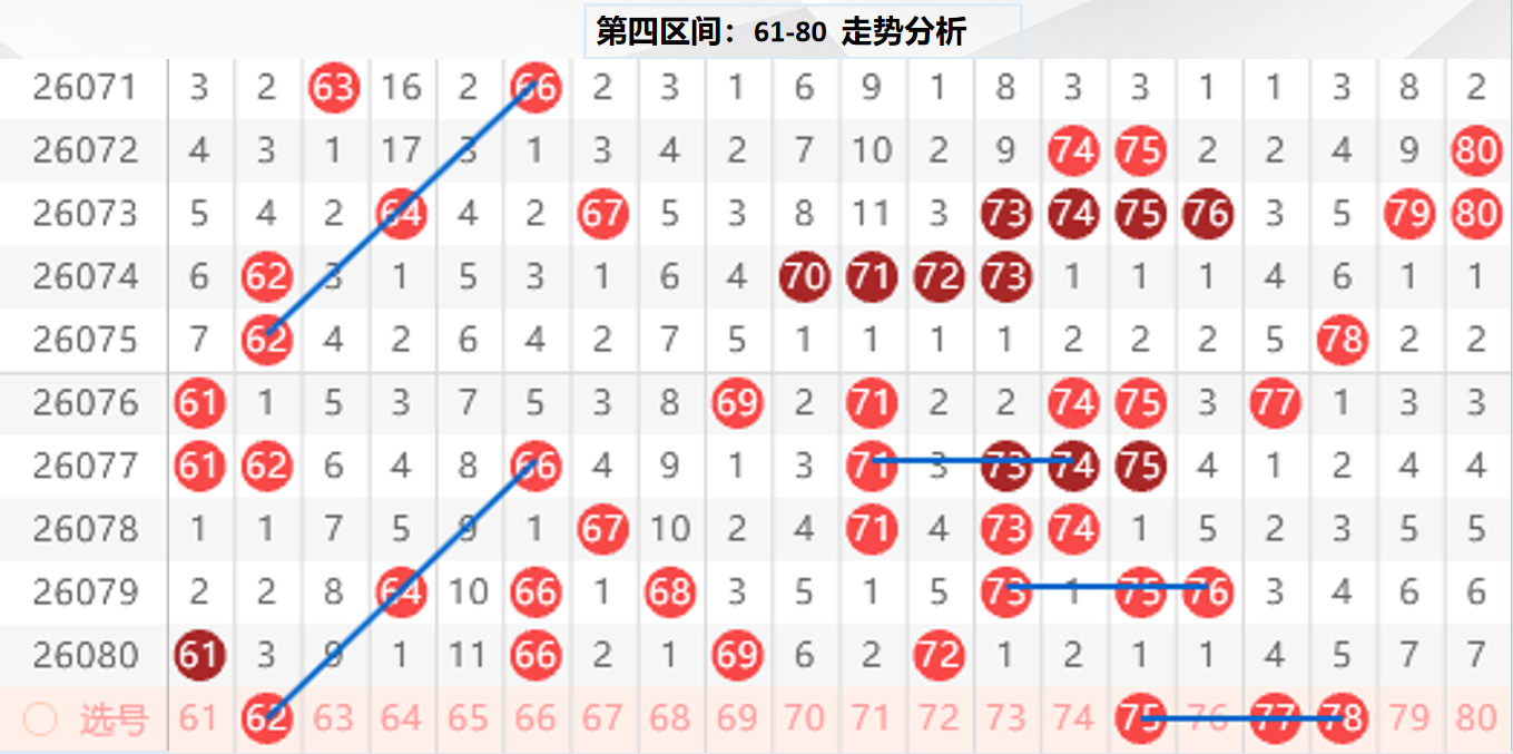 四区分析:【61-80】(走势图标注号码非小黄车大底,请谨慎参考,具体思路将在直播间分享讨论)