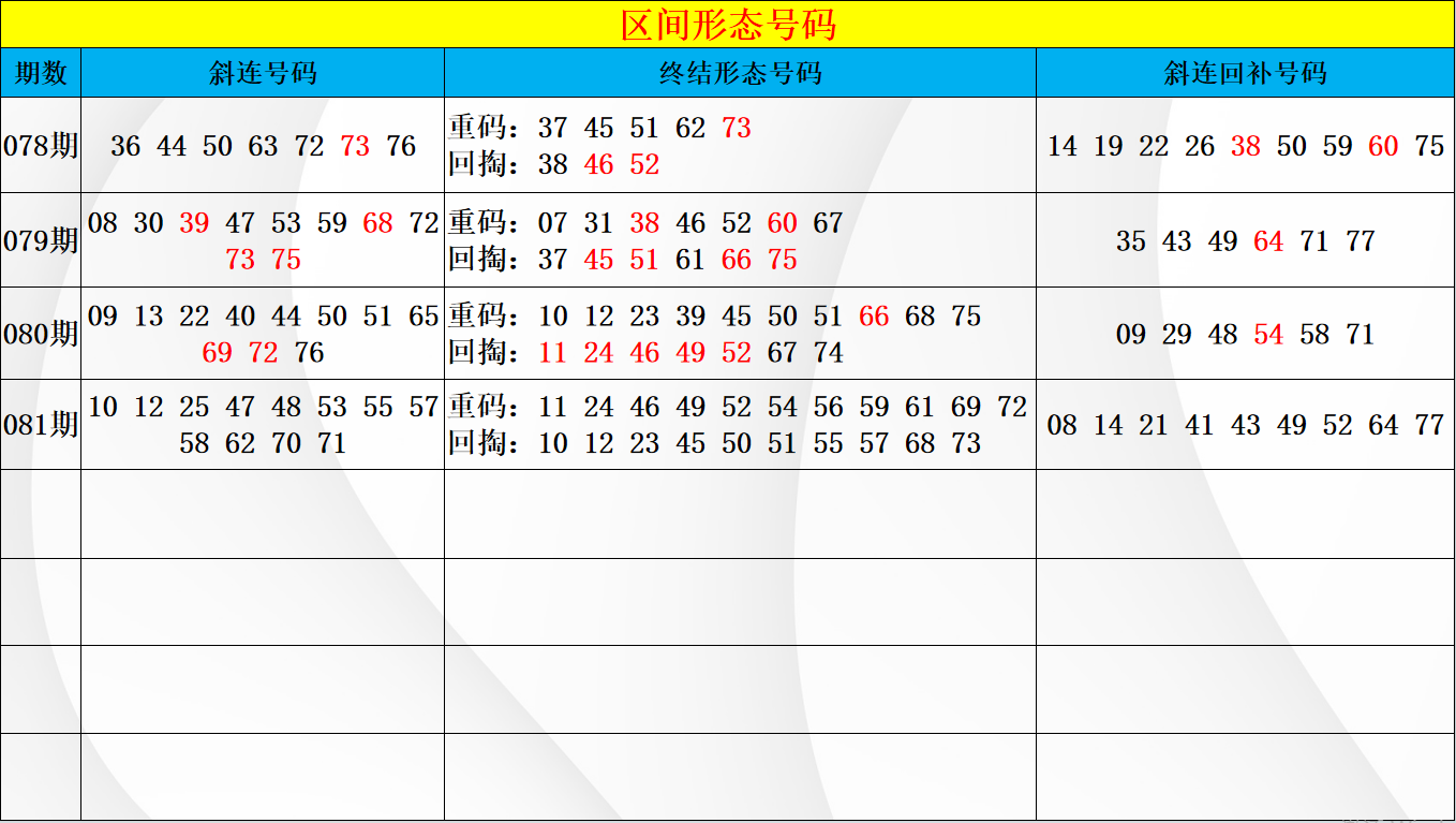 上期四区小幅回调,区间开出的4码中在同路和重码的接力形态上都有对应开号,区间在空位中连断三期小周期号码,已达到最大遗漏值,判断上本期在空位的小周期开号的可能性极大,对应号码中注意64 74 75 76 77五码中的判断选择,五码中都是有对应的放空形态,考虑回补位置上注意1-2码的选择,容错是必要的考虑条件。而在重码的接力形态上就要特别小心回补位置上的判断,倒置三重在整个周期的表现上都很弱势,但四区的71出现过相同形态,判断上66的接力形态中也是有机会开出,同时在同路66 69 72的布局中按近期的同路开号码模式上重码也是有相应的回补点位开出,本期形态布局上注意一重一分的选择。温冷周期的对应号码本期也要关注开号位置,区间连续两期回补出号,结合当前温冷周期在各个区间的表现判断,四区的温冷中同样要注意布局位置上的选择,号码中对应在65 70的形态分边接力位置,但同时空位的对应形态上也是有相应的遗漏隔期位置选择,空位中63 78 79 80四码中也要同时注意择一的选择布局,整区间的温冷号码保持2-3码的布局重点。
