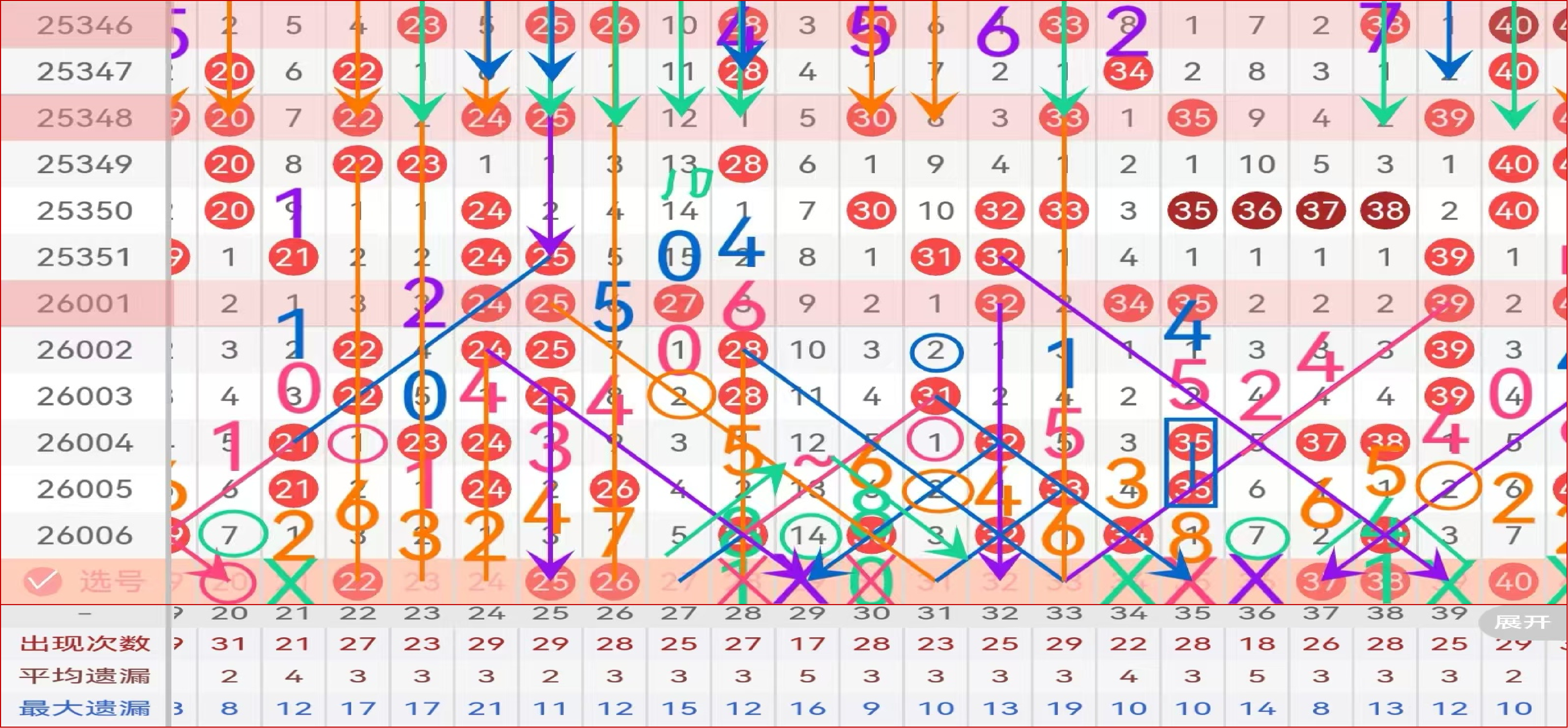 二区间推荐主做号码:22 25 26 37 38 40 防守号码:23 24 32 33 ;
