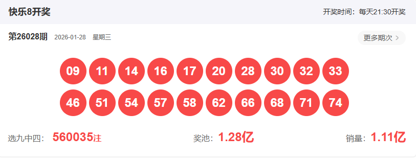 首先我们看下上期开奖结果快乐8第26020期开奖结果:09  11  14  16  17  20  28  30  32  33  46  51  54  57  58  62  66  68  71  74 ,和值为:817,大小比:10:10,四区6:4:5:5,出了三组两连号,分别是:16+17,32+33,57+58,直连重号出了6个,分别是:14, 28,51,58,62,71,其中58为五连重号,51为四连重号,14,62,71为三连重号,28为两连重号,我们把01-40分为前区,41-80分为后区, 则大小号一样,间隔10期未开出的冷号46开出,其余均为热号和温热号。
