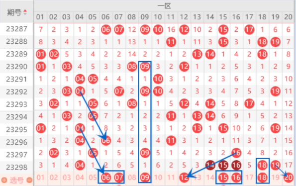 下图为01-20号数字区间走势分析图: