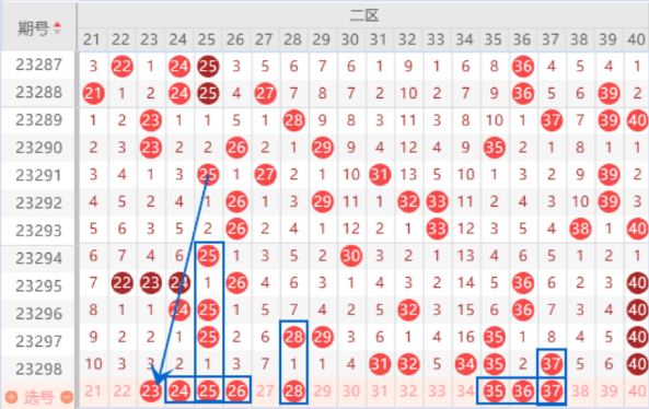 下图为21-40号数字区间走势分析图: