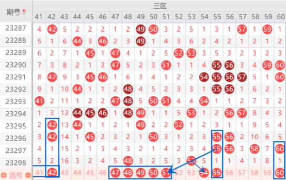 下图为41-60号数字区间走势分析图: