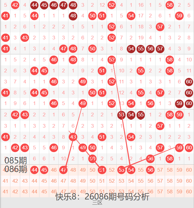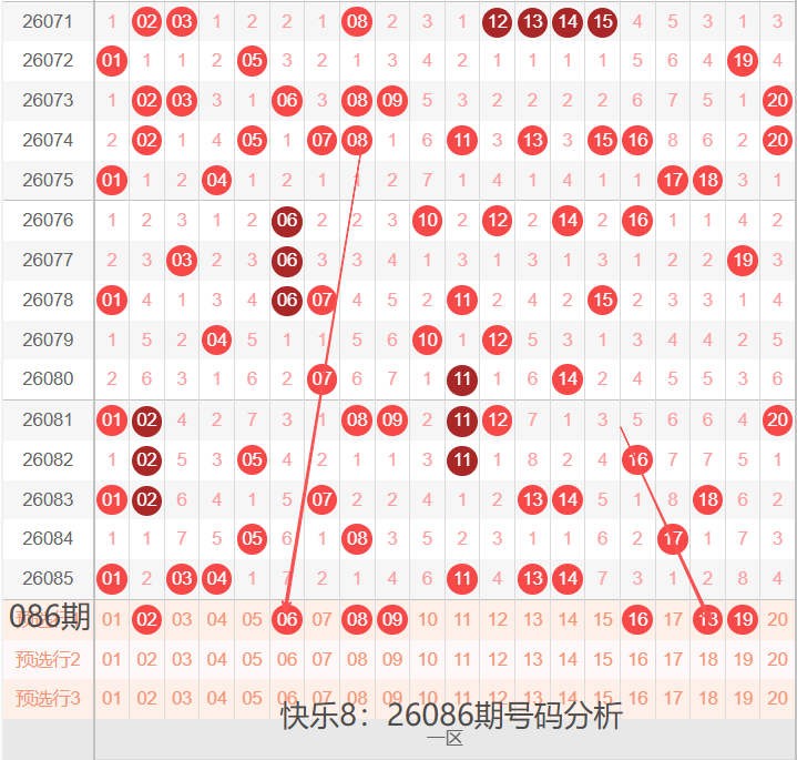 快乐8:26086期号码走势分析