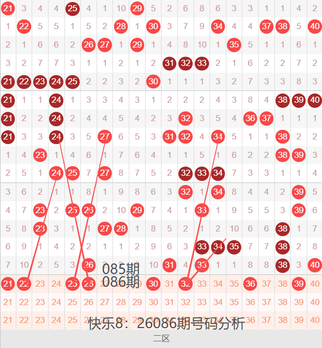 二区间21-40号码球走势,如下图:
