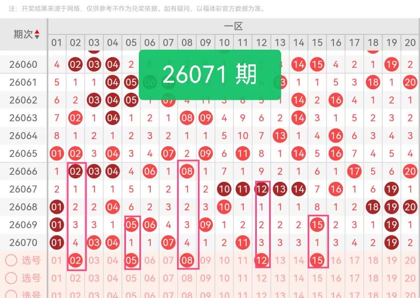 花花快乐8第26071期选号分析,上期会员命中铜胆,胆码连续中三期
