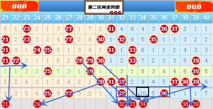 连号19 20号和连号21 22号都是同属于同期遗漏值连号,而且又是连在一起的,所以本期大概率是要有号码落下来的。观察历史期数中我们可以发现17 19 21号是经常出现的,所以此处我们就重点关注19 21号防守20 22号吧,当然这里的4个数同时开出的概率不大,19号和20 21号形成三斜连,21号和22 23号形成了三斜连,预测几率比较大,可以在这两个数里来作战,当然22号也不要忘记关注,因为它是空三对称类型,这种类型也是经常开出来的。再来看32 36号这种空三类型的号码组合,由于上期这种空三类型的中心号开出来了,本期就不一定会开出了,所以本期的空三中心号34号我们防守一下即可,主要还是看空三中心号的邻号33 35号吧,33号和31 32号及36 39号形成了三斜连号,相比于35号出号几率要大一点,所以这里我们就主要关注33号防34 35号吧。上期连号37 38 39号没有落号下来,那么本期落一个号下来的概率就很大了,这里要重点关注。