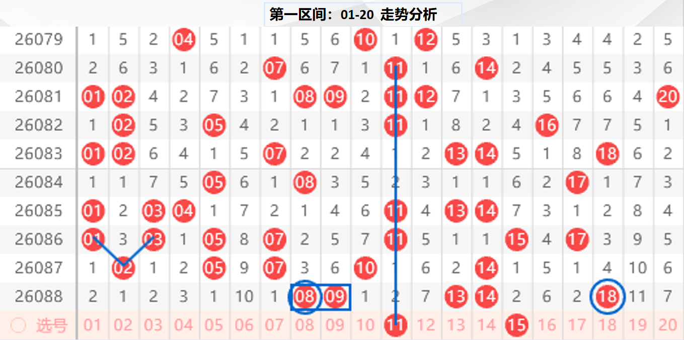 一区分析:【01-20】(走势图标注号码非小黄车大底,请谨慎参考,具体思路将在直播间分享讨论)