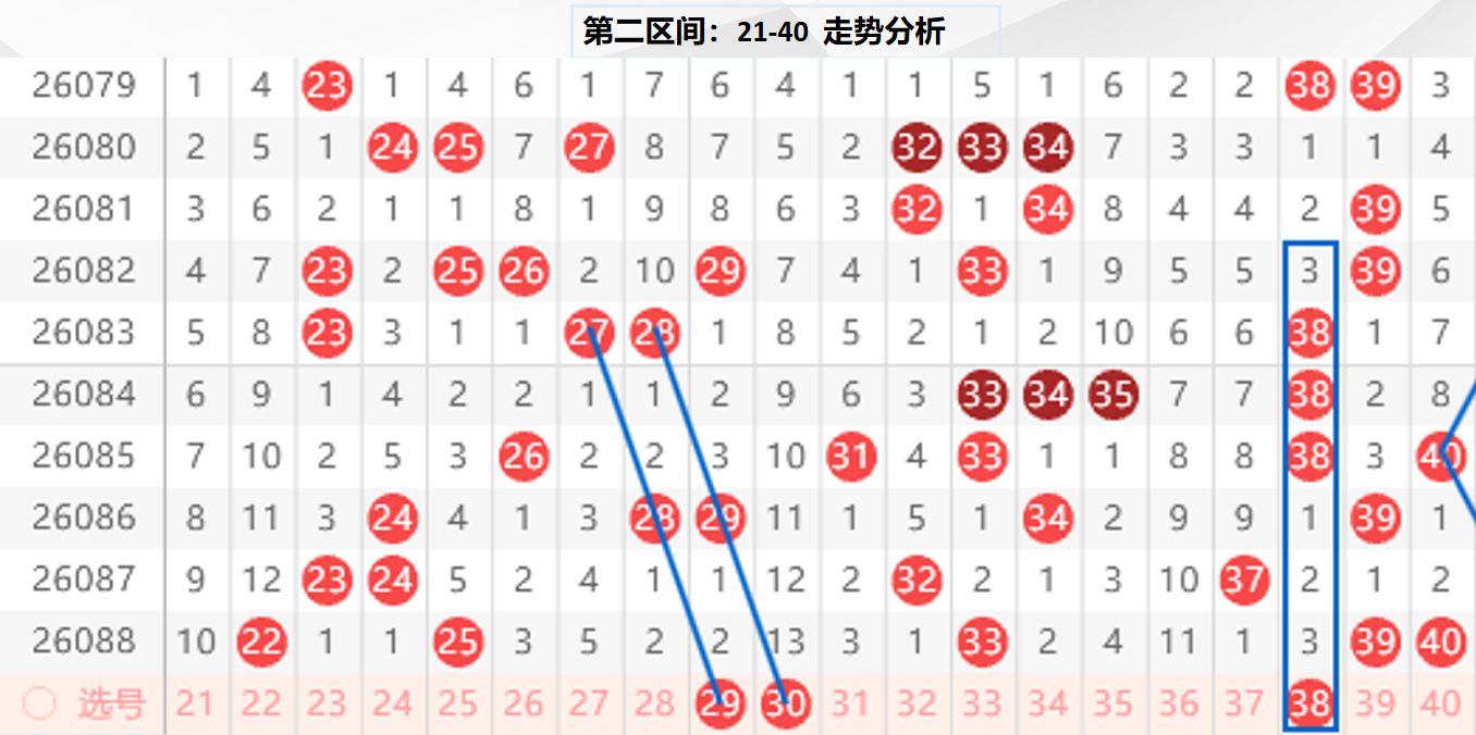 二区分析:【21-40】(走势图标注号码非小黄车大底,请谨慎参考,具体思路将在直播间分享讨论)