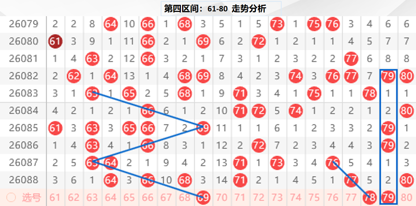 四区分析:【61-80】(走势图标注号码非小黄车大底,请谨慎参考,具体思路将在直播间分享讨论)