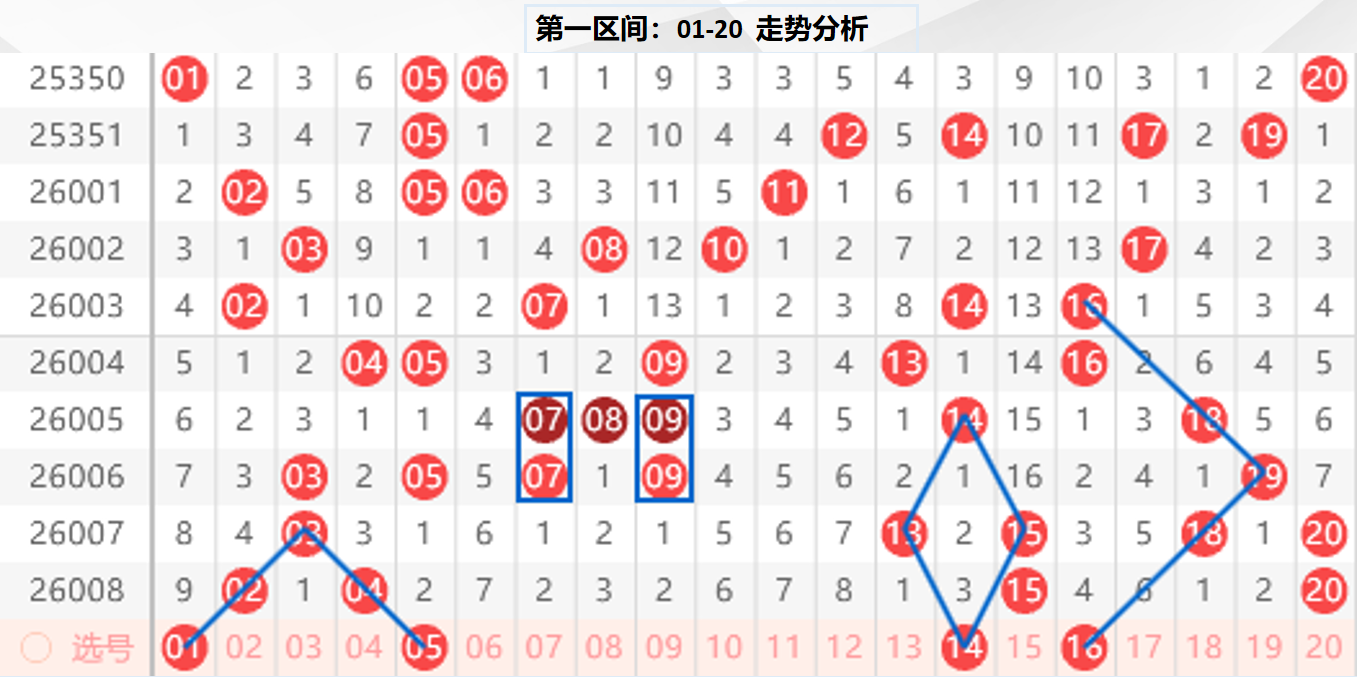 一区分析:【01-20】(走势图标注号码非小黄车大底,请谨慎参考,具体思路将在直播间分享讨论)