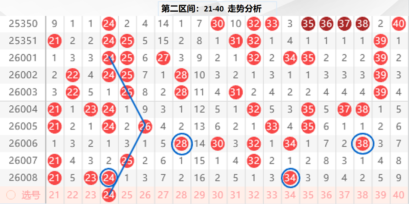 二区分析:【21-40】(走势图标注号码非小黄车大底,请谨慎参考,具体思路将在直播间分享讨论)
