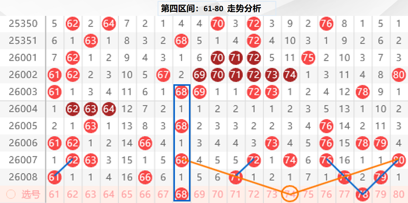 四区分析:【61-80】(走势图标注号码非小黄车大底,请谨慎参考,具体思路将在直播间分享讨论)
