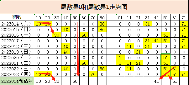尾数1在近十期走势上又比较明显的走势,昨天预判的71有可能会斜着连号开出,