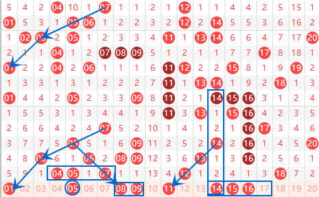 下图为01-20号数字区间走势分析图: