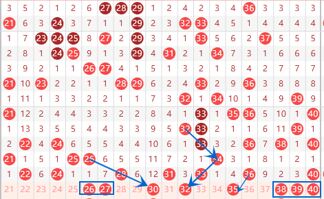 下图为21-40号数字区间走势分析图: