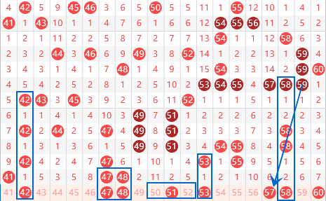 下图为41-60号数字区间走势分析图: