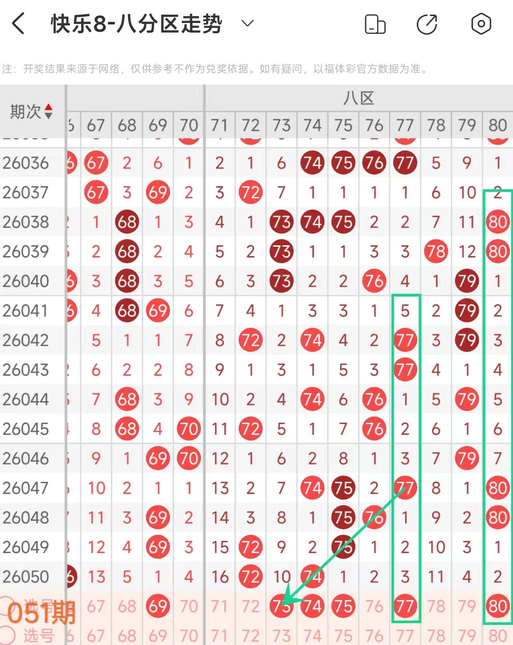 上期八区开出72 74这2个号码, 本期可以考虑2个左右