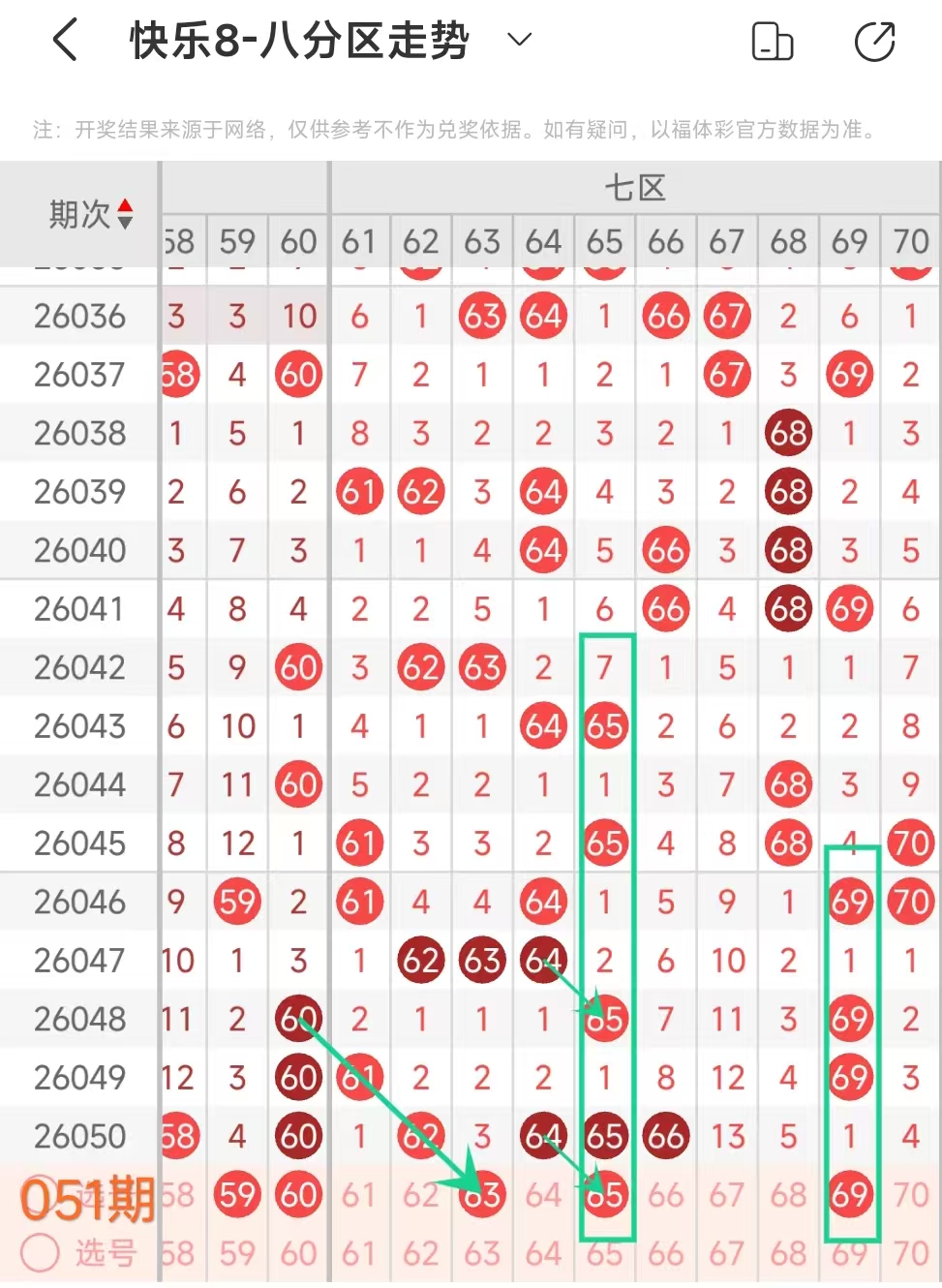 上期七区开出62 64 65 66这4个号码,本期考虑出3个左右。
