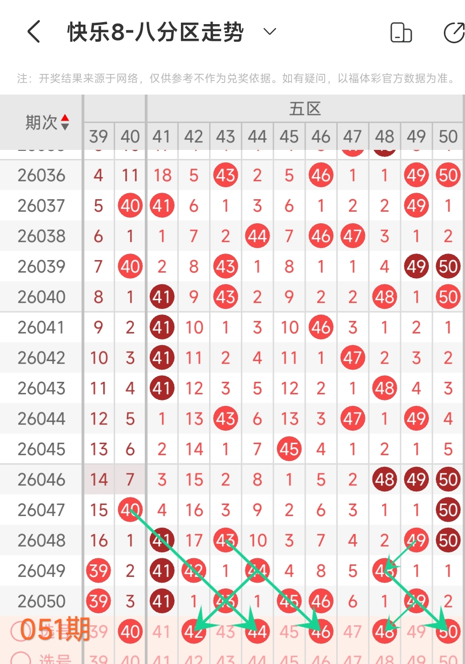上期五区开 41 43 45 46这5个号码,本期该区应该出号3个左右