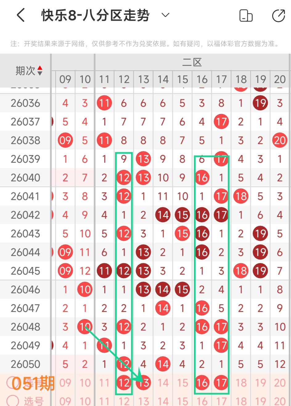上期二区开出12 14这2个号码,本期应该出2个左右。