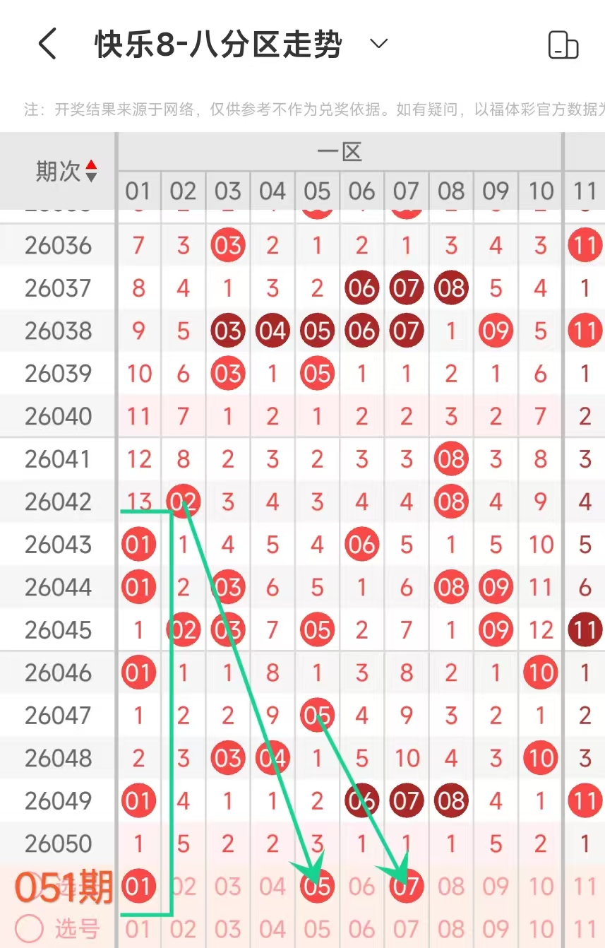 在快乐8的探索之旅中,通过对开奖走势图细致入微的观察,我们总结出一些具有参考价值的规律。几乎每一期开奖号码都呈现出以下显著特征:其一,大概率出现连号;其二,常常伴有边码;其三,遗漏值为1 2 3的号码频繁现身;其四,重号现象也较为常见。掌握这些要点,能为我们的投注提供方向指引。我们约定采用八分区走势图来展开分析。