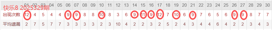 快乐8热号选择标准参考图(以30期为基准)所圈即为部分热码示意图