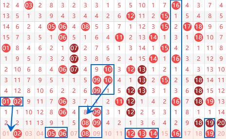 该区间的01 02本期我们要注意落下一个号码的情况,重点关注一下02号数字。冷号03 04本期我们也是要关注一下出一个号码的情况。12 13 14本期可以关注一下,尤其是14号数字,本期出号的机会还是比较大的,它是属于断斜连对称号码。16号数字是属于432走势,可以关注一下。