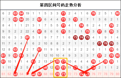 第四区间冷码转热码,走出连号的两重号。这个走势有点像之前的23 24和63 64,所以多关注一下。然后在四区上近期走的确实有点不错,不管号码如何分布,至少看起来四区走出了应该有的样子。但是对于号码的挑选就压多下功夫来辨析一下,究竟哪一些号码才是我们需要的。