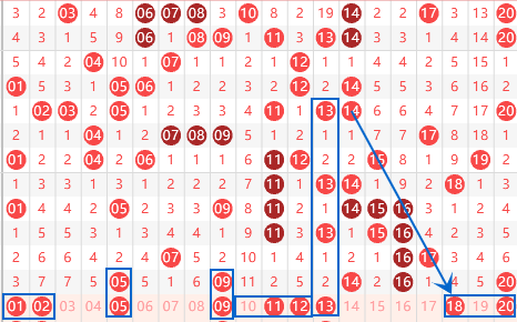 本期的01 02号数字我们可以关注一下,1-4号数字已经连续3期没有落号了,本期有可能会落下号码来,如果本期不落,那么下期就要落了,所以本期我们做防守,下期在看看情况。本期的05 09我们要注意出重的情况,重点考虑一下05号数字出重的情况。本期的10 11 12我们要注意一下,出一个号码的情况还是有的,我们可以在这里挑一个胆码出来的。本期的18号数字我们要注意一下,它是属于空一斜5连号,出号机会还是有的。