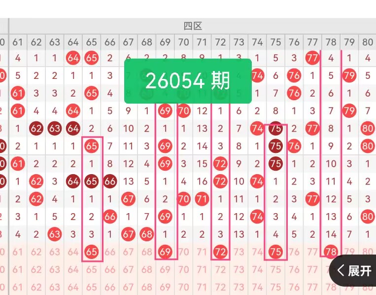 上期第四区间开奖3个号码,本期有望增加开出。65开启四区热度,前端过渡平顺,与上期大号区衔接自然;69居中支点,奇偶适配,点位清晰;72衔接前后,让区间出号更流畅;75靠近后半段,热度稳定,与周边号码联动佳;78收尾有力,补齐四区尾部,让大号区分布均衡