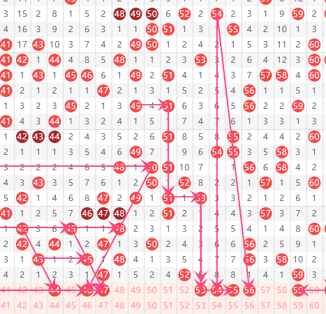 三区分析:【41-60】(走势图标注号码非小黄车大底,请谨慎参考,具体思路
