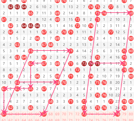 四区分析:【61-80】(走势图标注号码非小黄车大底,请谨慎参考,具体思路将在直播间分享讨论)