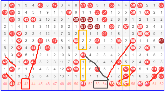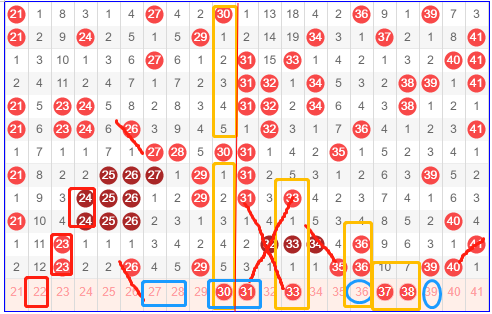 第二区间号码21-40,二区是一个近期以来从不会让人失望的区间。也是上一期作胆的地方,不过可惜错位了,导致中出一丢丢不值得一提的小奖。这一期依然是值得我们期待的区间,尤其是蓝色和黄色标注区域。