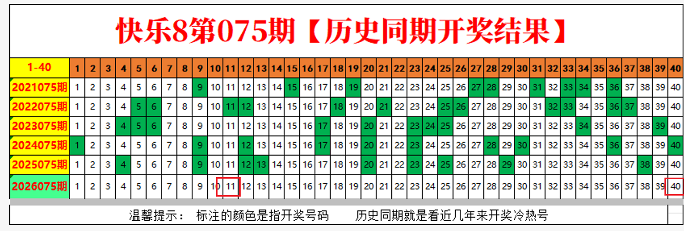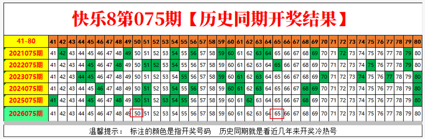 历史同期开奖结果仅做个参考数据即可。以后不会做过多的分析,因为涉及的号码比较多,也无法更细致的体现出来。它不像开奖走势图那样,可以直观的看到,由于开奖期数的限制,所以还是把重心放到常规走势图上。