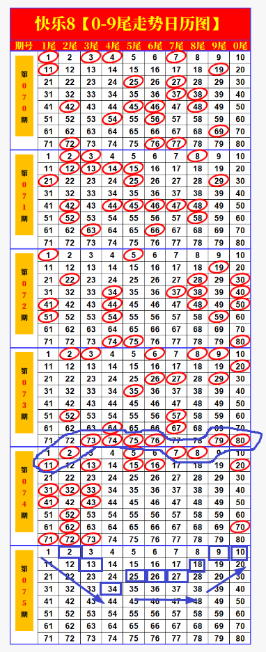 快乐8第2026075期尾号、四分区分析,上期胆码3中2,尾号画线9中5!
