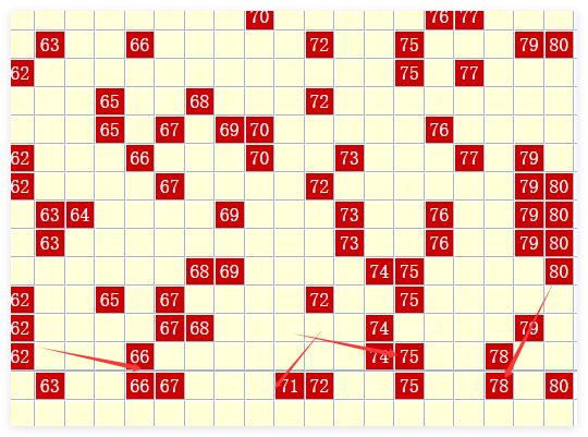 四大区划分:将1-80个号码均分为四个区间(1-20, 21-40, 41-60, 61-80)。每期开奖后,统计每个区间出现的号码个数。