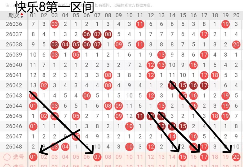第一区间01这个号码的话,还是看好一个奇数系列的一个走势的一个位置,07这个号码的话,也是走到了一个奇数西联的位置,那么十五十七这两个号码的话,可能考虑下一个的可能性大,那么20这个号码还是考虑应该有落号的可能性。
