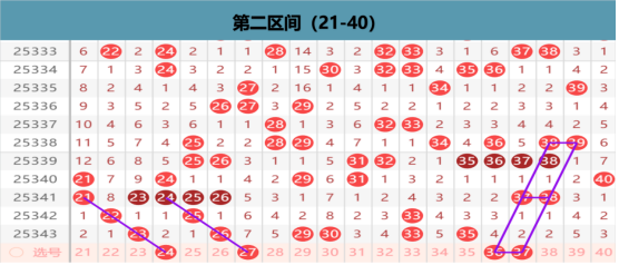 本区上期开出6码的区间布局,那么在本期我们优先考虑的还是同路下方的出号,23 26 29和30 33的出号点位,这个位置上我们优先考虑的还是分边点位的出号,这里切记 是有放空点位的出号的,所以这个位置上我们是要考虑容错的出号的可能性的,再一个就是关注区间的同路的出号点位的出号,23 33的位置上我们考虑一码的出号机会,形态的点位上基本就是这些了,再看下空位的出号点位,我们要关注的还是37 38的下方出号的可能性,下方的36 37 38 39的位置上我们选择一码出号的可能性,其他位置上就不是我们考虑的重点位置了。