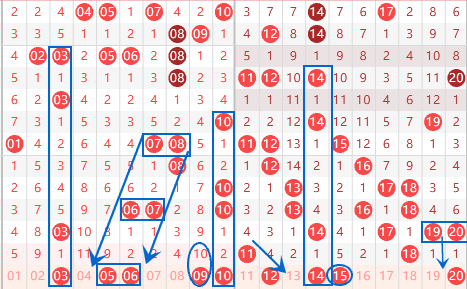 该区间的03号数字是属于151走势,本期可以关注一下。连号05 06这种情况我们要注意了,还是有机会开出来的。上期开出了11号数字,那么我们就要注意分边的情况了,重点关注一下12号数字的出号情况。14号数字是属于141走势情况,可以关注一下。本期的05 15 25我们要注意一下,开出一个号码的情况还是很大的。