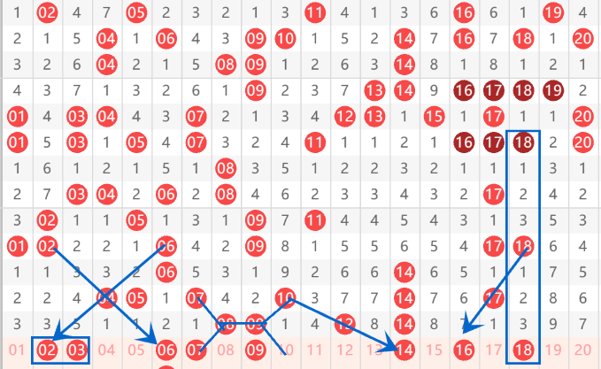 下图为01-20号数字区间走势分析图: