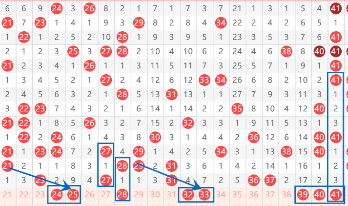 下图为21-40号数字区间走势分析图: