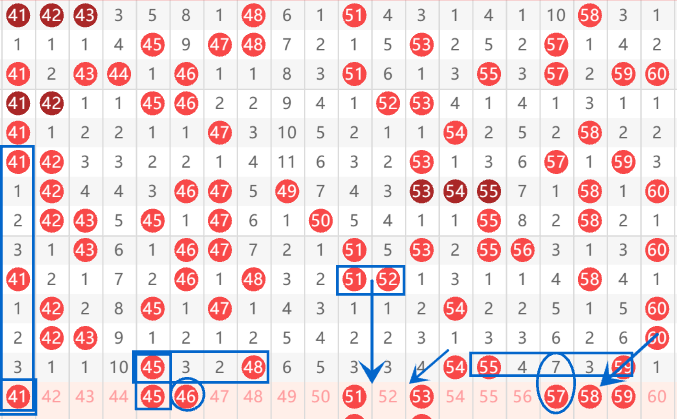 下图为41-60号数字区间走势分析图: