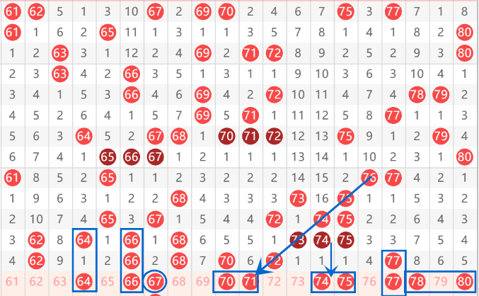 下图为61-80号数字区间走势分析图: