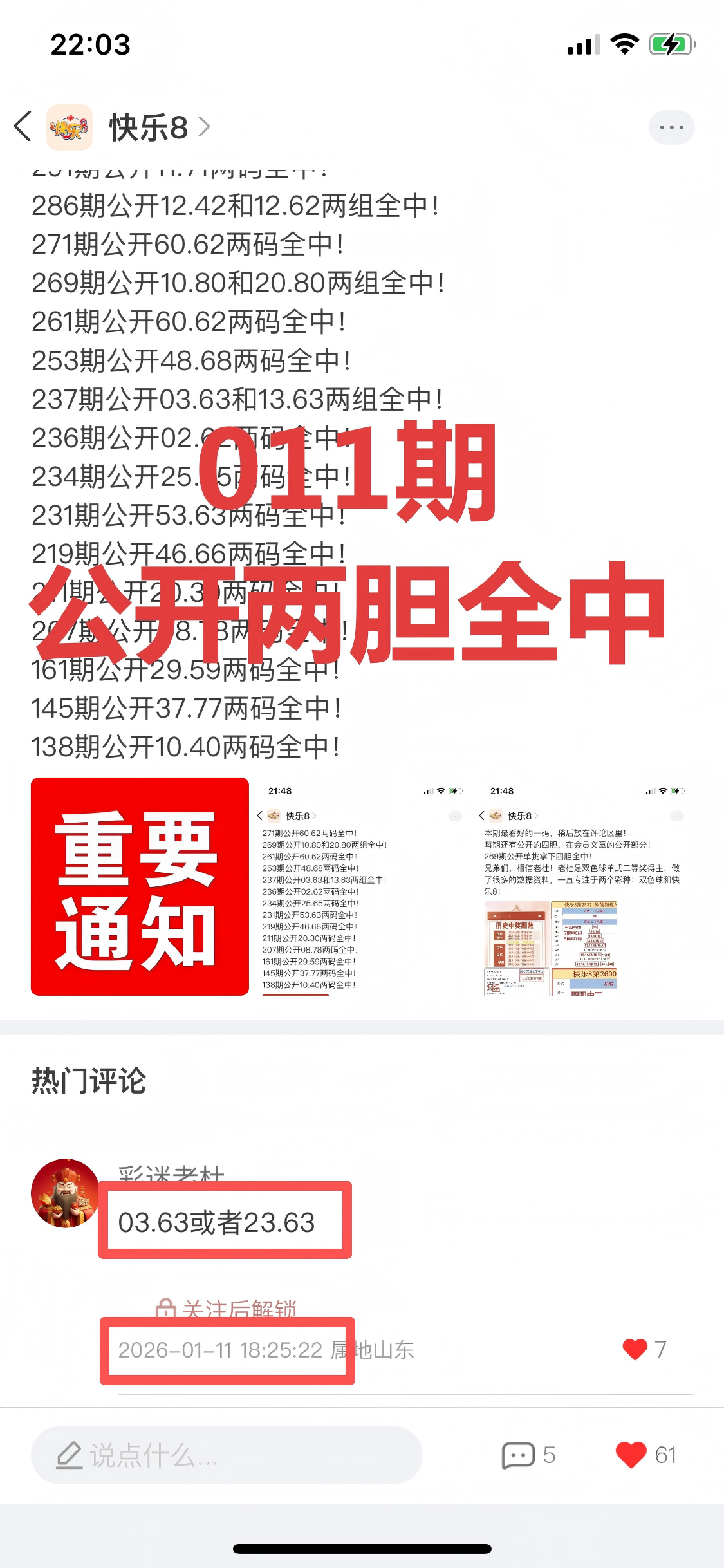 本期看好号码开出的范围是两码走势至四码走势之间。上期开出的尾号,围中了八尾,开出了四码走势,围中了九尾和0尾,均开出三码走势。上期社区公开动态再次围中两胆全中!公推内容五期中四期!会员文章公开部分,单挑的一组四胆,四胆中三胆!近期会员文章推荐和公开推荐,接连中奖,期待继续爆发!