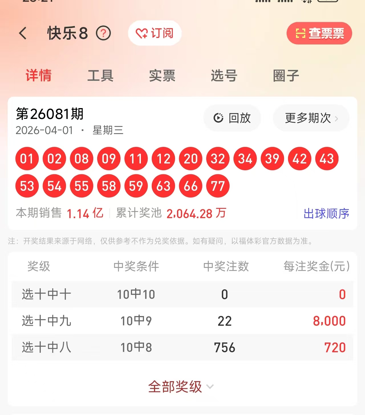 26081期命中9码 01,08,11,34,42,43,54,58,77