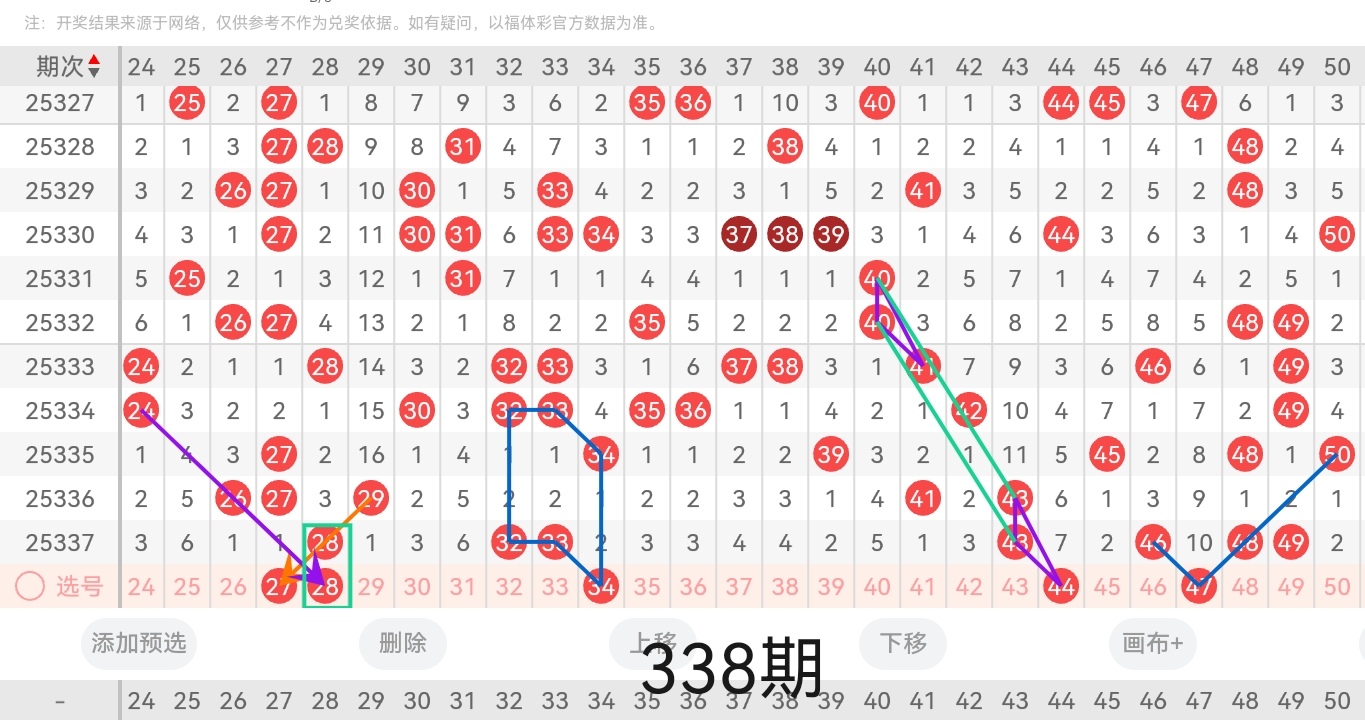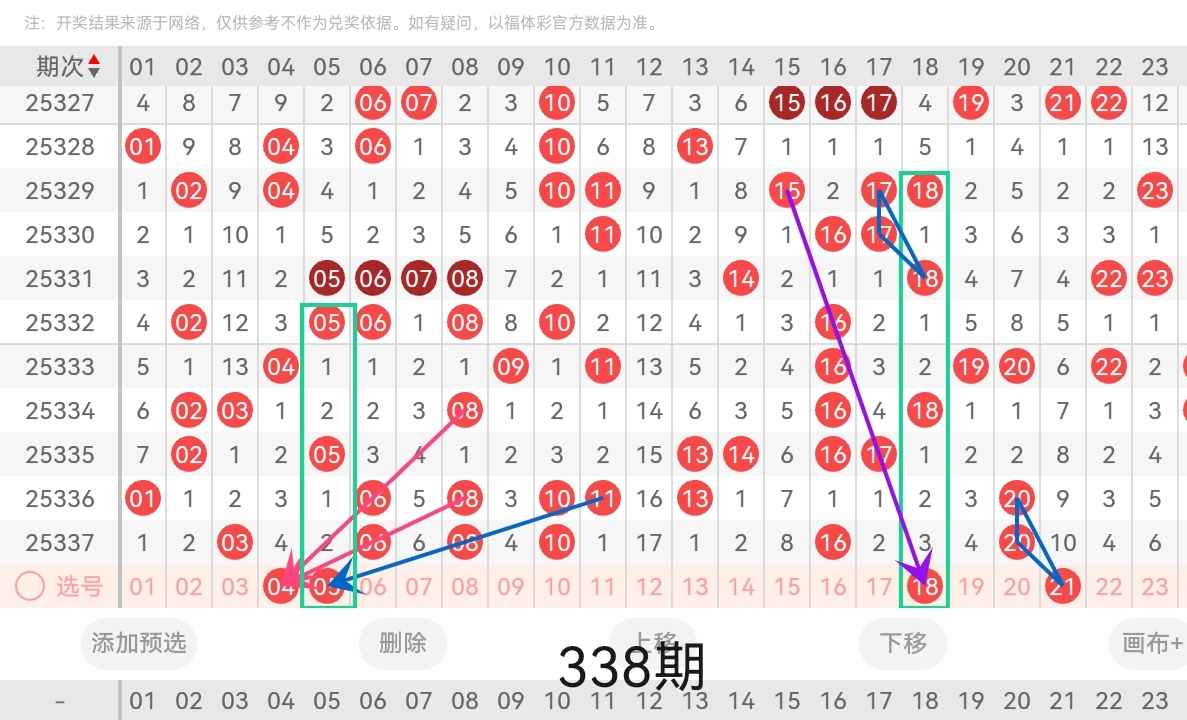 通过以上对上期的简单回顾,下面进入2025338期(下面简称本期)的选号分析: