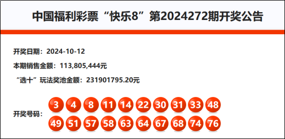 首先我们先来回顾快乐8第2024272期开奖号码: